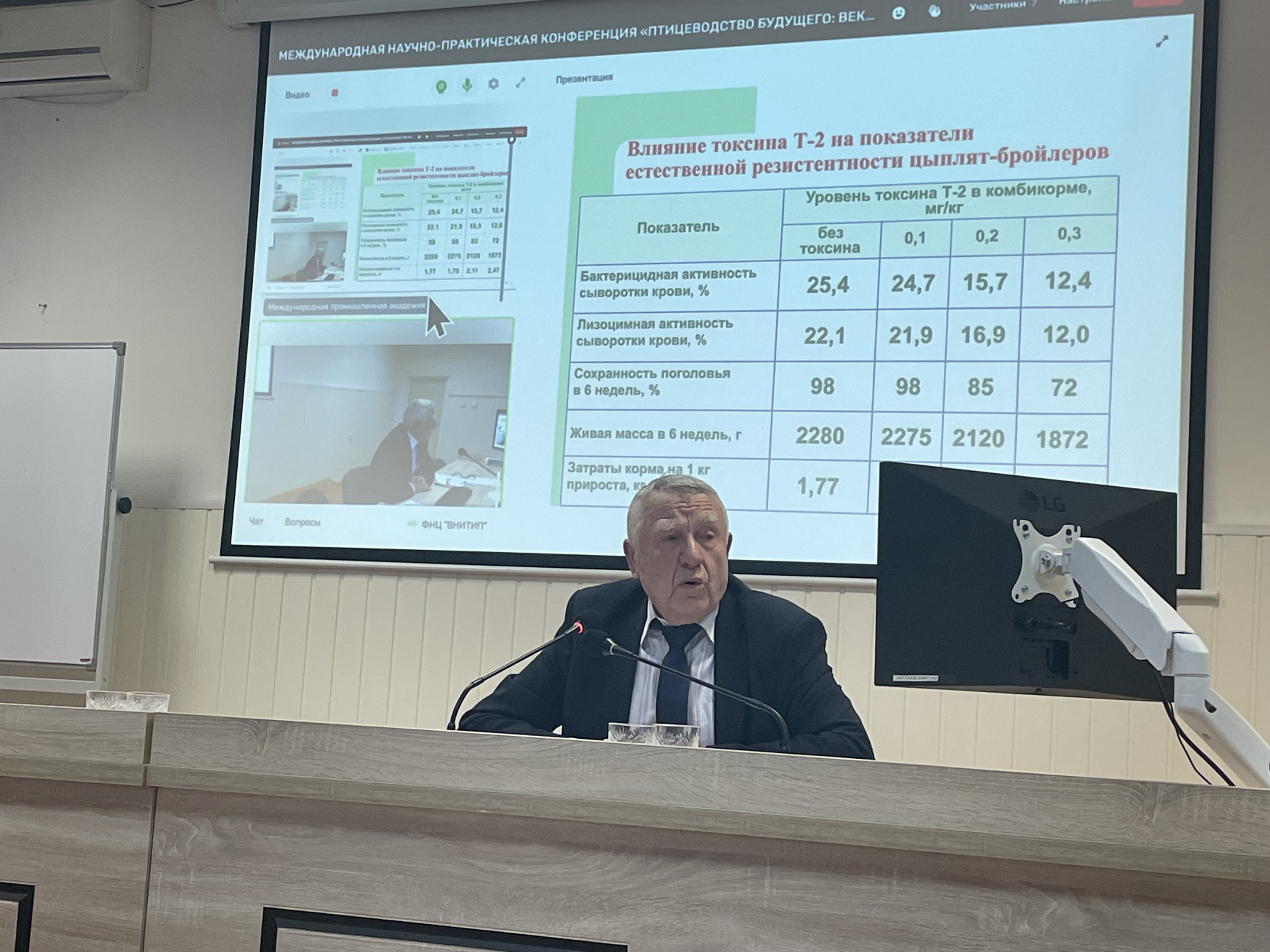 Особый интерес вызвали доклады ведущих ученых. Научный руководитель ФНЦ «ВНИТИП», академик РАН В.И. Фисинин представил доклад «Мировое и российское птицеводство: реалии и вызовы будущего». Академик И.А. Егоров, руководитель научного направления по питанию птицы ФНЦ «ВНИТИП», освятил тему «Безопасность кормов и научное обоснование повышения их использования в птицеводстве». Член-корреспондент РАН А.Ш. Кавтарашвили, главный научный сотрудник ФНЦ «ВНИТИП», рассказал об «Энергосберегающих светотехнологиях как факторе конкурентоспособности птицеводческого предприятия».