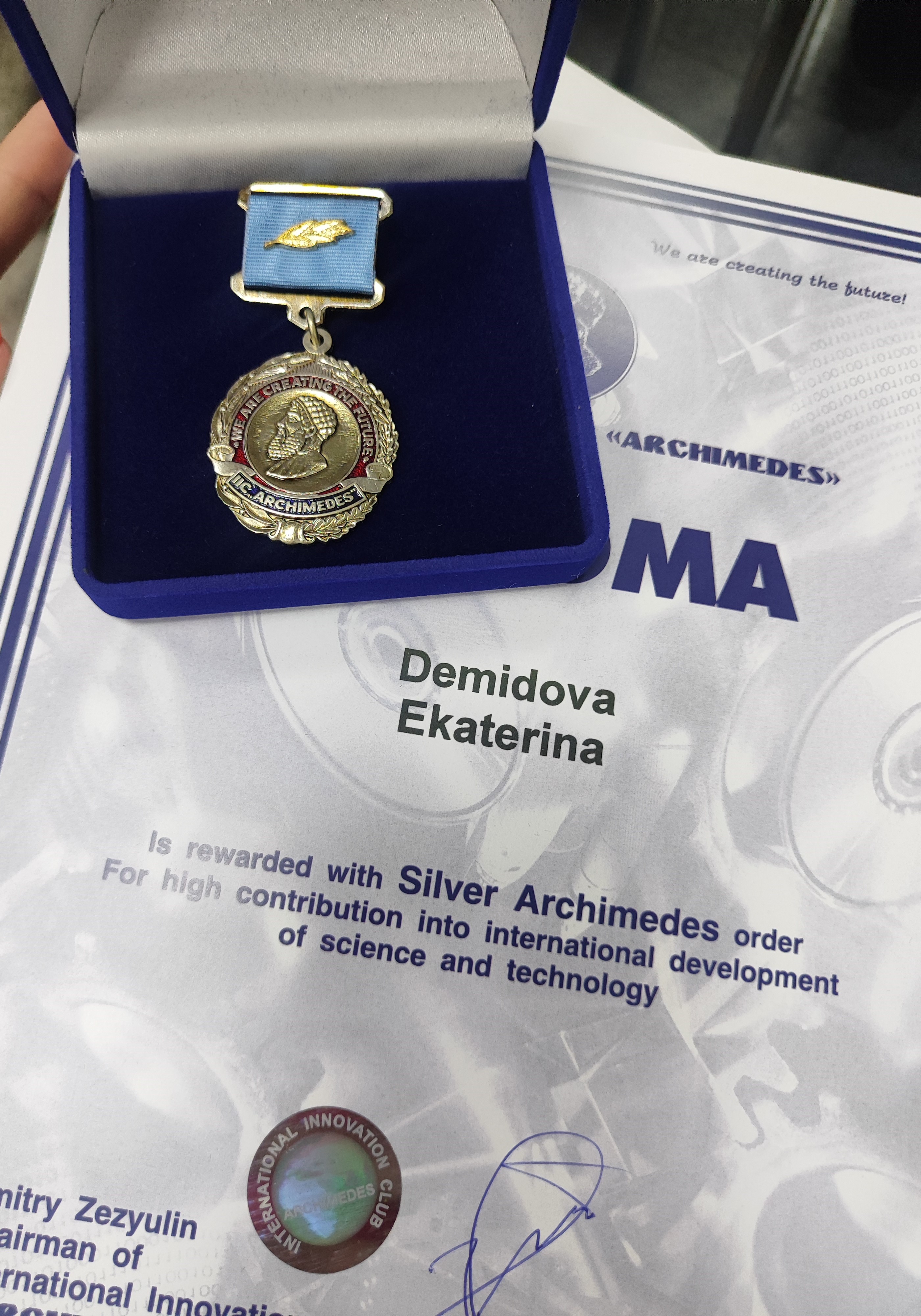 - Демидова Екатерина Сергеевна за свой вклад в это важное исследование была награждена серебряным Орденом «За созидание»! Это заслуженное признание ее усердия, таланта и стремления к инновациям.